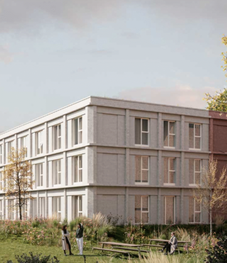 Groendaken als natuurlijke buffer – De groendaken beperken hittestress en bufferen regenwater. Ze verhogen de duurzaamheid en uitstraling van het project — én verlagen de onderhouds- en energiekosten.